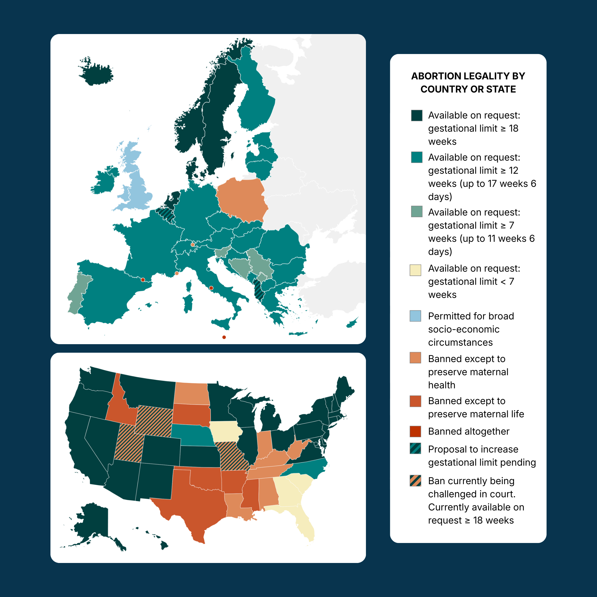 Sources USA: KFF, Center for Reproductive Rights, Power to Decide Abortion Finder