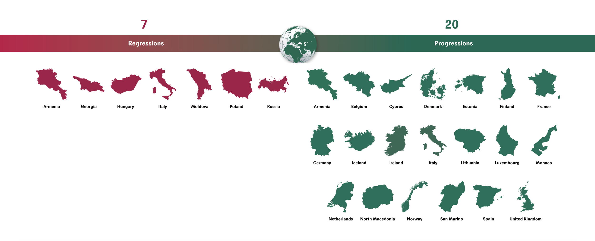 “In the last decade, 20 countries have taken progressive steps to expand access to abortion care by removing restrictions. In contrast, 7 countries have introduced regressive measures that create new barriers to access. Poland is the only country in Europe, and one of only 4 countries globally, to have removed a ground for legal abortion from its laws in the past 30 years.” Graphic and caption source: Center for Reproductive Rights, Abortion Laws in Europe 2025